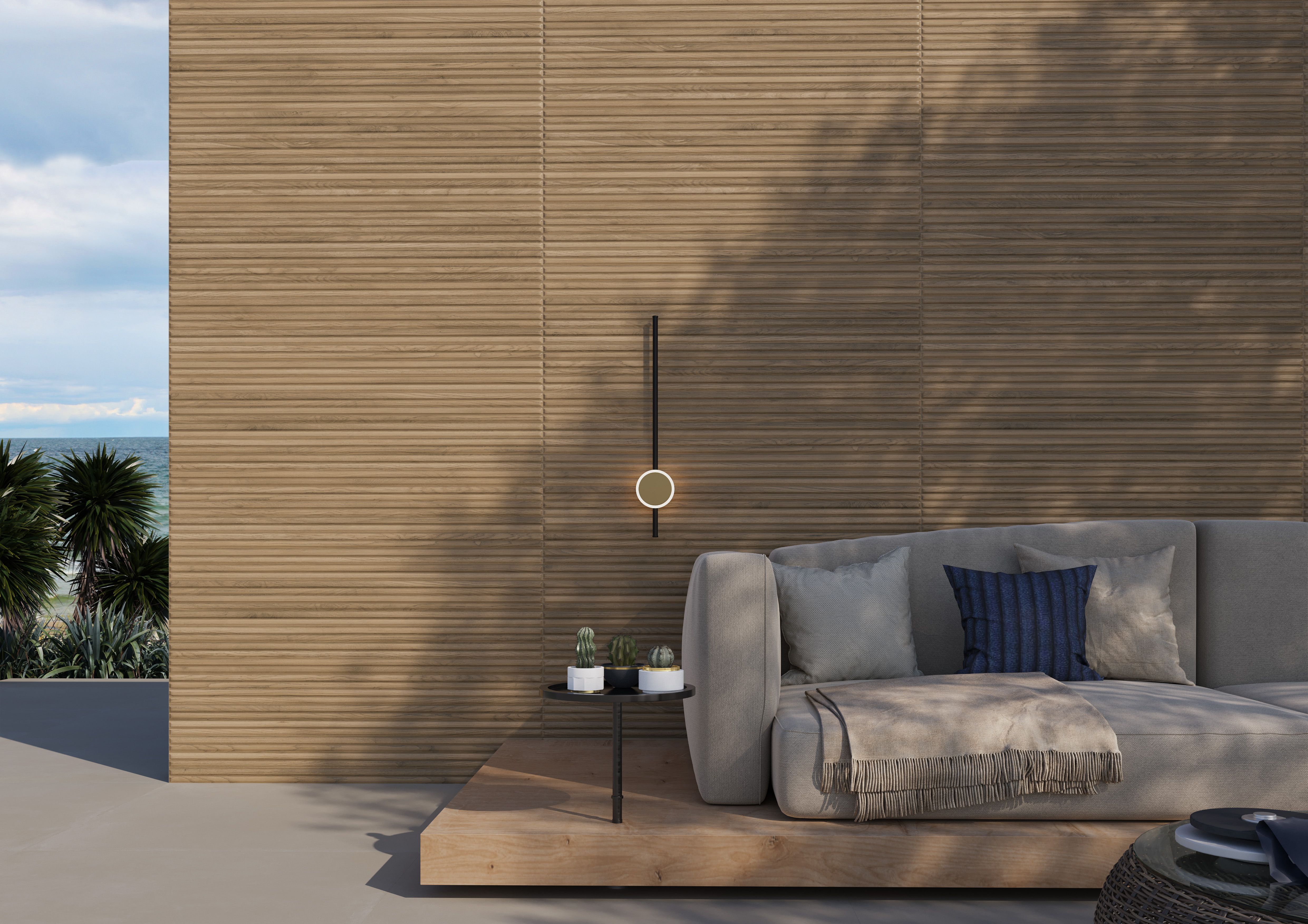 Porcelanato visual ripado em áreas internas e externas: elegância e durabilidade