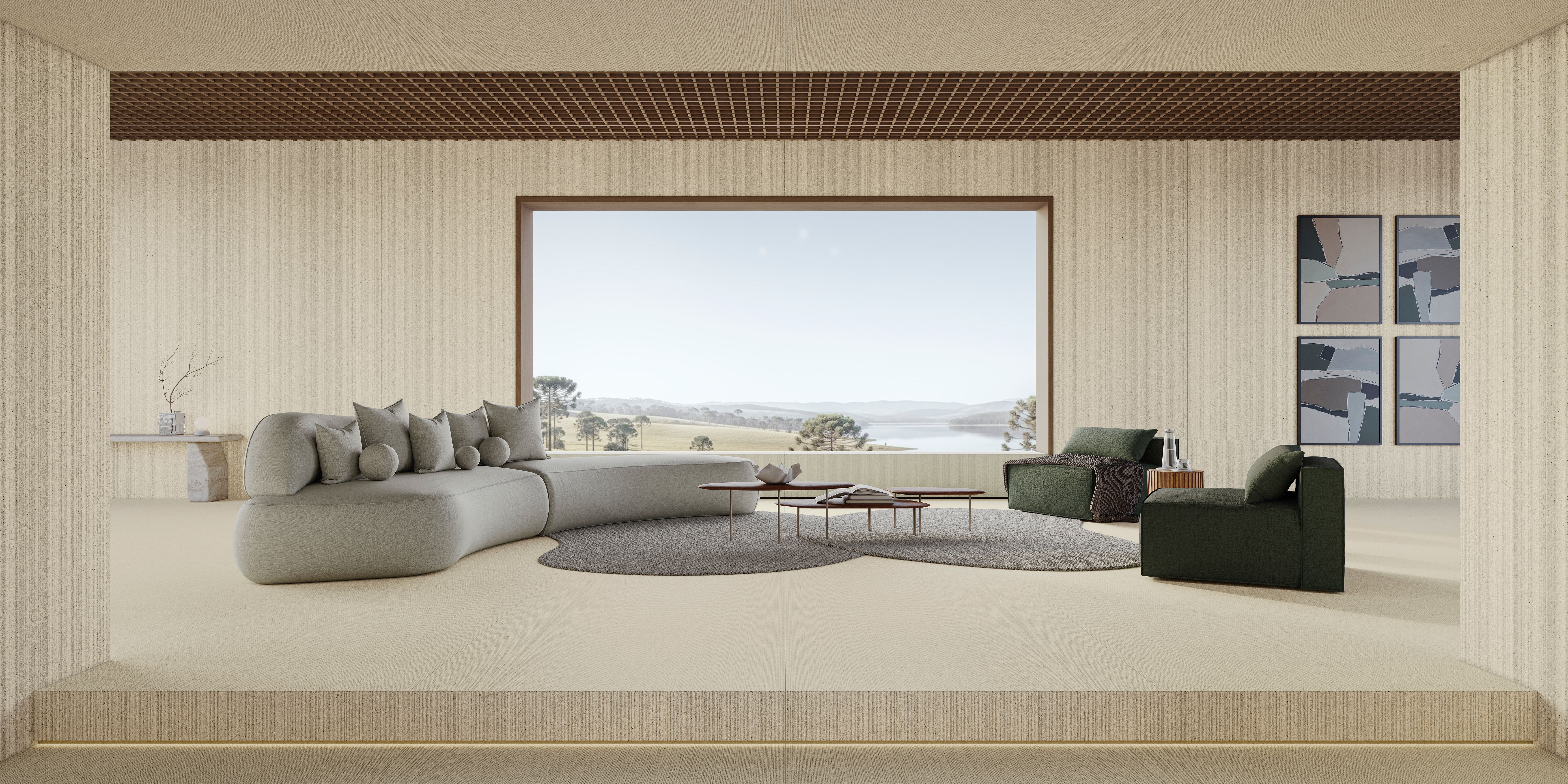 Uma coleção pensada para criar espaços equilibrados, sóbrios e pautados pela beleza essencial. Inspirada nesta pedra calcária amplamente utilizada na Grécia Antiga, com sua aparência suave e detalhes sutis, Limestone Eterna combina força e serenidade em uma superfície marcada por pequenas nuances tonais que reforçam sua estética atemporal. A tecnologia Deep Design adiciona microtexturas à peça, valorizando o caráter natural da pedra sem pesar no visual. A coleção inclui ainda uma peça decorativa com efeito canelado, também desenvolvida com Deep Design, e um kit de cortes orgânicos – em formato reduzido, pensado para facilitar a aplicação – que amplia as possibilidades de paginação e permite composições mais fluidas e contemporâneas.